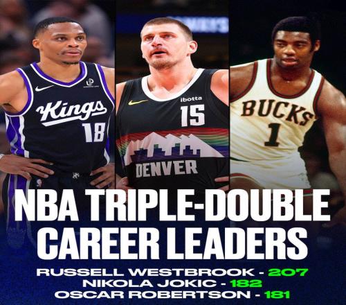 生涯里程碑!约基奇182次三双超越大O独占历史第2,距离威少还差25次