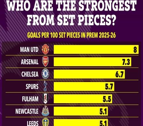 北京时间2月4日,据相关统计数据显示,本赛季迄今为止,曼联在定位球方面的效率遥遥领先于其他英超球队,在每100粒...