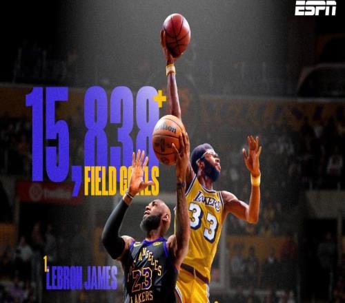 北京时间3月6日,41岁的勒布朗-詹姆斯再度迎来历史第一的里程碑,他的运动战进球15838+超越贾巴尔,换言之勒布朗...