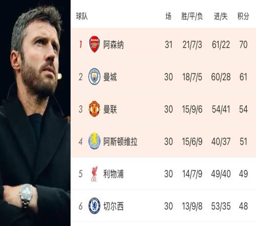 卡里克带队进入前三,而曼联夏季仍然面对重启危机
