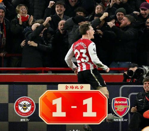 热闻马杜埃凯破门,波特扳平!布伦特福德11阿森纳送曼城大礼