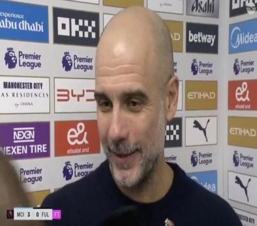 英超第26轮,曼城主场3-0击败富勒姆,赛后,曼城主帅瓜迪奥拉接受了TNT体育的采访。佩普,恭喜。三粒进球,零封对手,这...