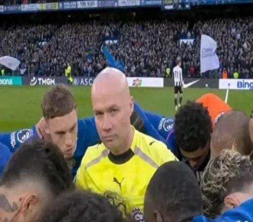 英超赛场现罕见一幕:裁判“站C位”成切尔西赛前动员焦点英超第30轮 | 切尔西 0-1 纽卡斯尔联地点: 斯坦福桥球...