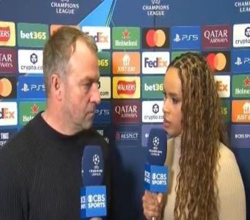 欧冠1/8决赛首回合,巴萨客场1-1战平纽卡,巴萨主帅弗里克赛后接受了CBS体育的采访。汉斯,这个最后阶段的点球把...